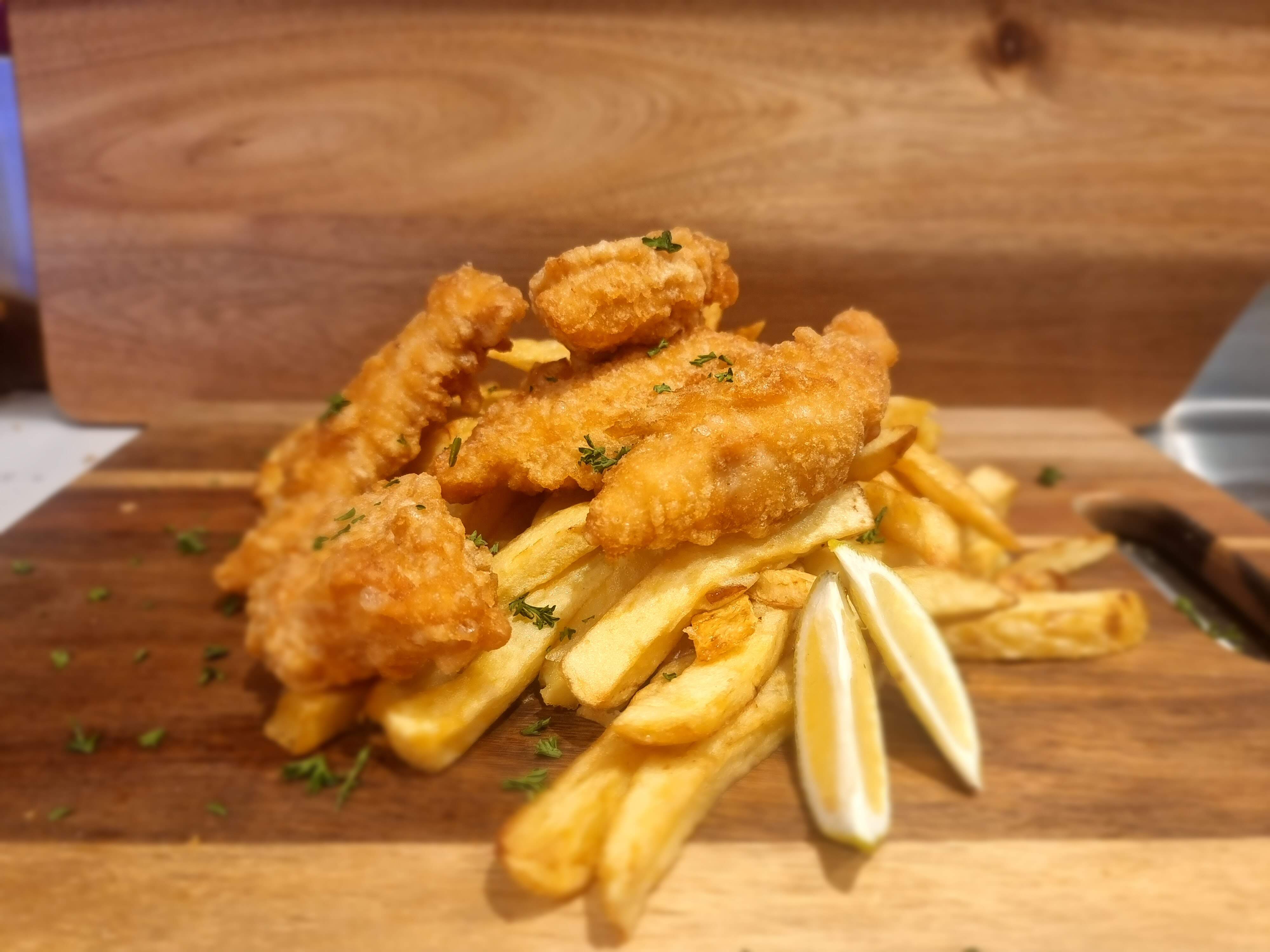 Step into our traditional British chippy, where timeless flavors and crispy perfection await you. Our chippy is a beloved local gem, known for serving the finest fish and chips around. Our fish is always fresh, our chips are always golden, and every meal is made with care and dedication to quality. We've got something to satisfy every craving. Join us for a taste of tradition, wrapped in paper and served with a smile. Experience the true essence of a British chippy today!
